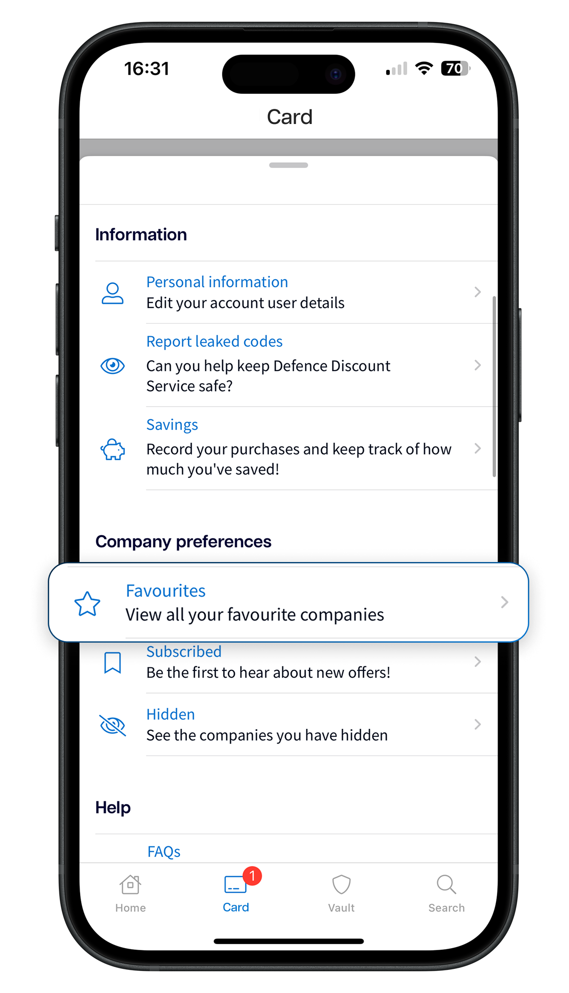 Easily search for stores or brands and get discounts on the go with your virtual card.